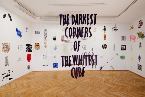 THE DARKEST CORNERS OF THE WHITEST CUBE Ausstellung, Konzert und Vorträge zu künstlerischen Prozessen jenseits des Werks The Darkest Corners of the Whitest Cube widmet sich einem Paradox – den dunklen Ecken des White Cube, dieses Idealraums der Kunst, den man im eigenen Kopf hat und mit dem streng zwischen Werk und Nichtwerk unterschieden wird. Für die Dauer einer Ausstellung wird diese Entscheidung vorübergehend außer Kraft gesetzt, um die Kriterien der Werkfindung zu hinterfragen. Aus über 30 Ateliers und anderen künstlerischen Arbeitssituationen haben Solveig Nawroth, Marco Miersch und Daniela Hoferer Artefakte und Ensembles zusammengetragen, um diese verborgenen Helfer des künstlerischen Prozesses für einen Moment im Rampenlicht der Ausstellung stehen zu lassen und ihre Ausstellungstauglichkeit in der Praxis zu überprüfen. Diese Objekte - in einem Schwebezustand zwischen Fetisch und Begleiter, Werk und Spielerei, Kunst und Nicht-Kunst – werden in einer eigens von den Künstler/Innen entwickelten Ausstellungsarchitektur inszeniert: Verwendet wurden hierfür in einem überraschenden Recycling-Prozess fast ausschließlich Materialien aus dem Depot des Kunsthauses Dresden. (Begleitheft) Text: Kunsthaus Dresden Mit: Yasmin Alt, John Bock, Stefanie Busch, Misch Da Leiden, Lukas Ditl, Georg Ditl, Svea Duwe, Anne Frühauf, Christian Gebhardt, Thomas Helbig, Anja Hellstern, Martin Honert, Anja Jurkenas, Nastasja Keller, Nelly Knatz, Katia Kuhl, Marco Kunz, Stefan Leyh, Michael Mader, Martin Mannig, Elvira Mechtold, Juliane Melches, Marco Miersch, Ulrike Mundt, Solveig Nawroth, Yuka Origasa, Akatsuki Ogura, Guido Reddersen, Susanne Ring, Stefan Schadewaldt, Elke Schindler, Veronika Schneider, Su-Ran Sichling, Hans Stützer, Cosima Tribukeit, Alexandra Wegbahn, Silke Wobst, Carl Emanuel Wolff Die Fotos zeigen Ausstellungsansichten im Kunsthaus Dresden. Copyright Fotos: ©David Brandt, die Rechte an den Abbildungen der Arbeiten liegen bei den Künstlern. [I´m sorry, but this text is provided in German language only.]